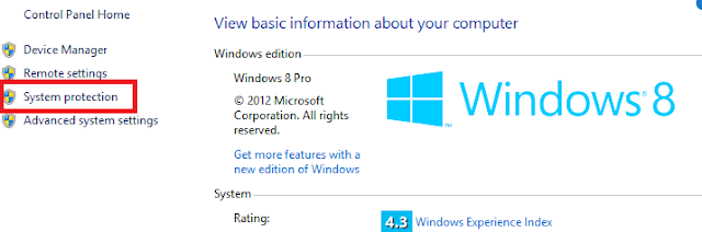 ذلك ستجد خيار في اقصى اليسار system protection انقر عليه